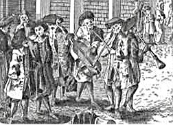 Suite à plusieurs édits tsaristes (Catherine II, Alexandre 1er...), les cinq millions de juifs vivant en Russie à la fin du 18 ème siècle furent confinés dans un territoire de quelques centaines de kilomètres autour de Kiev (Pologne, Lituanie, Biélorussie, Ukraine, Galicie et Moldavie). En plus, leur accès aux grandes villes, aux écoles -et donc aux conservatoires- était strictement limité, de sorte que la plupart des musiciens se formaient "sur le tas" et le métier se transmettait de père en fils (les femmes n'étant pas admises, en ces temps-là, à se produire en public!). Ils parlaient un yiddish argotique ("klezmerloshn"), truffé d'anagrammes et de mots à sens redéfini, préféraient, dit-on, souvent les femmes et l'alcool à l'étude de la torah et se regroupaient en guildes ("tsekh"), sortes de syndicats qui les défendaient contre les autorités et fonctionnaient comme médiateurs sociaux.